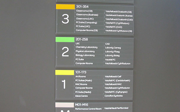 A directory is used to list the facilities within a building.